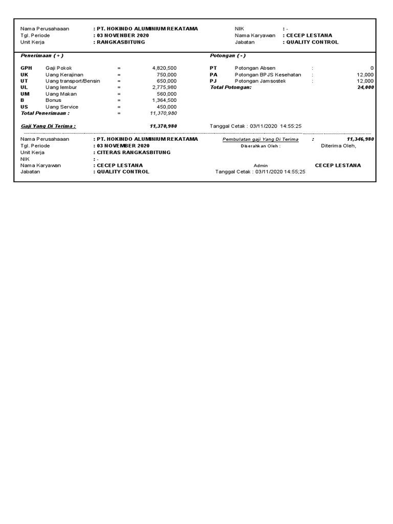 Gaji pt npi tambun :